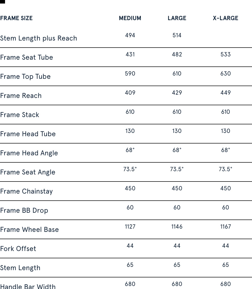 BIKE SIZE CHART