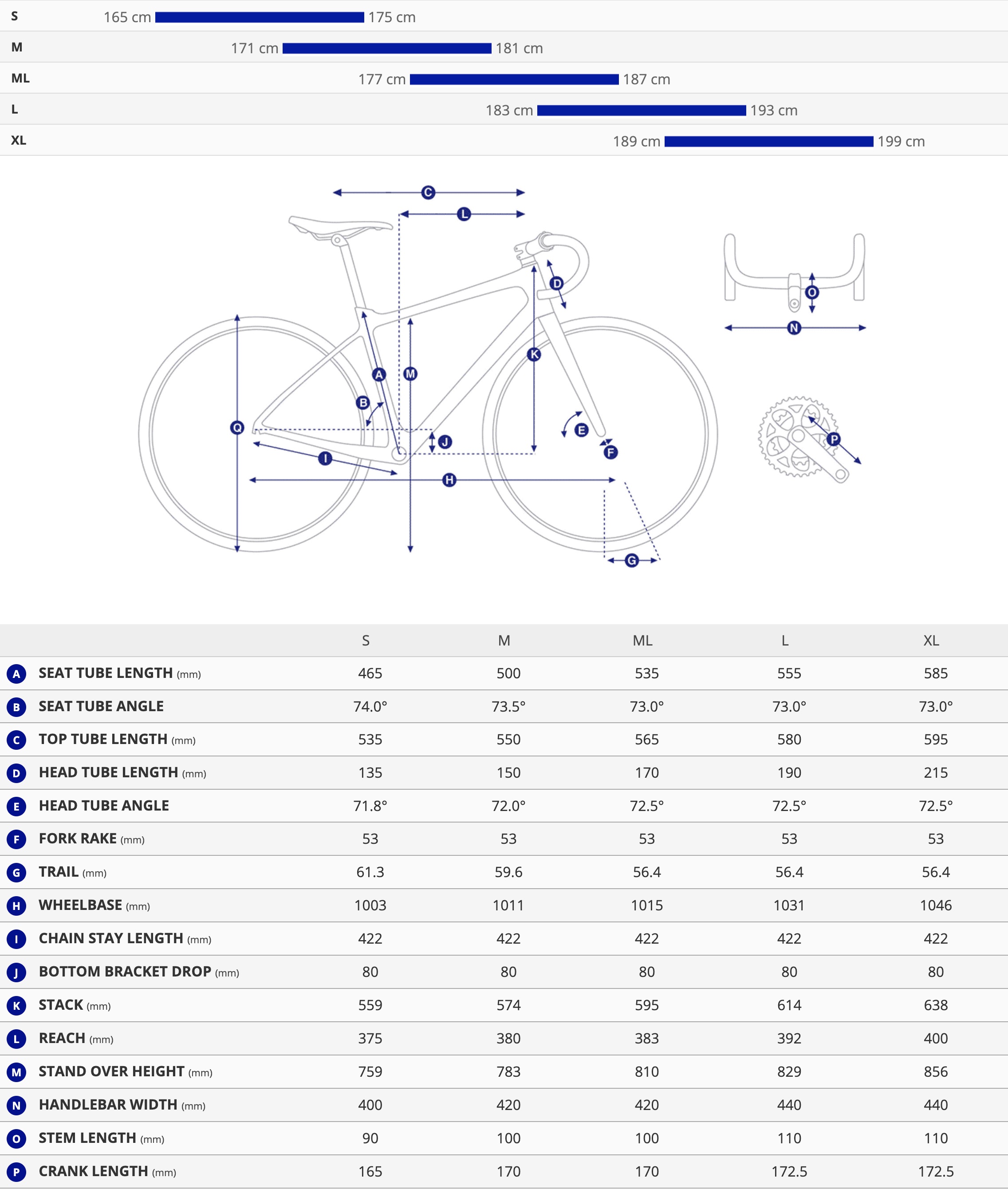 - Balanced road geometry: Frame is specifically engineered to produce a balanced, all-rounder feel that blends confident rider positioning with agile cornering and acceleration.