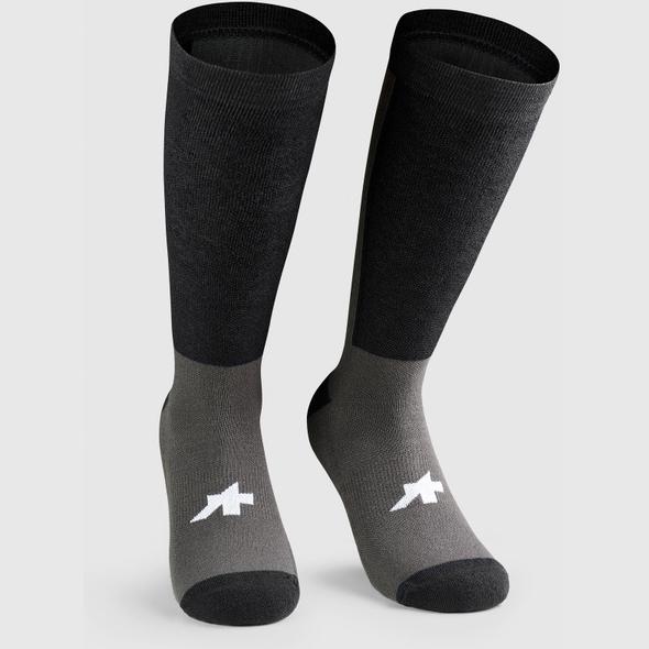 Durable socks with high insulation for off-road winter riding, engineered with a thermoregulating, ultrasoft yarn and reinforced across the leading edge.