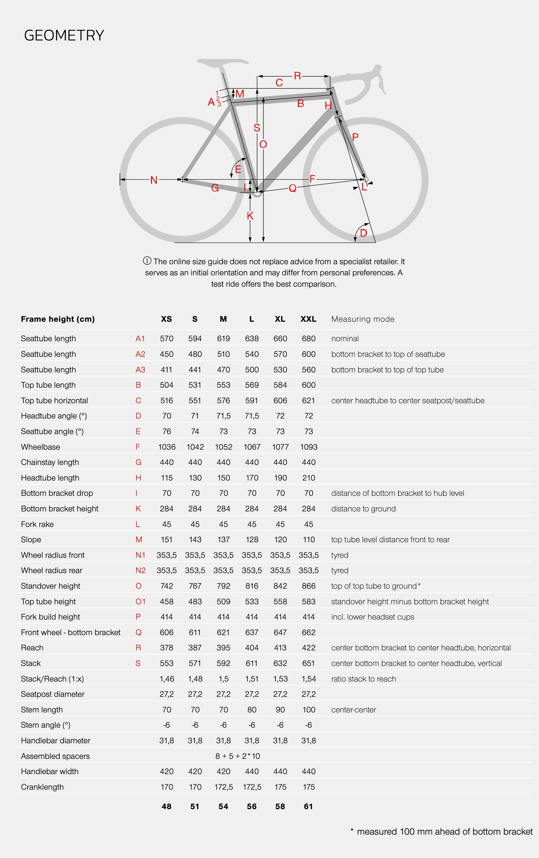 - Two colour variants and six frame sizes from 48 cm to 61 cm
