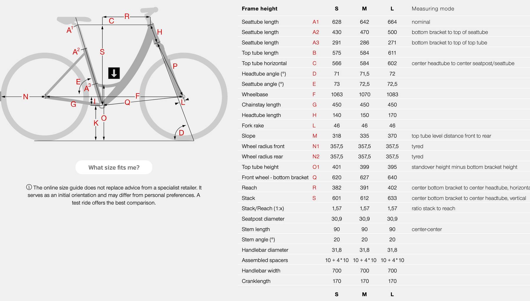 BIKE SIZE CHART