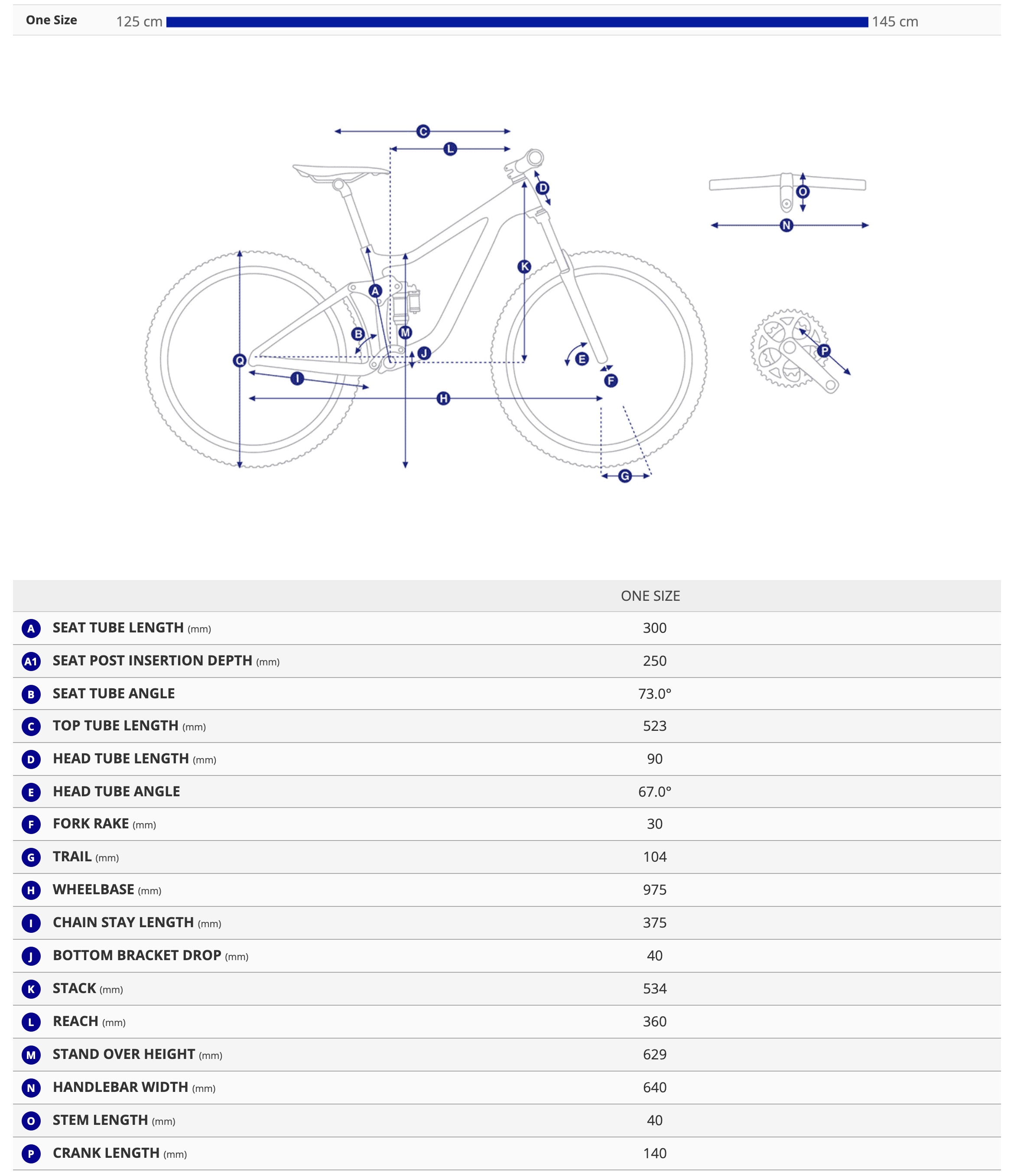 - Crankset: alloy forged, 30t, 140mm