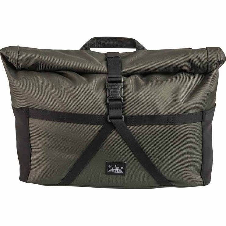 - Our handy little bag has a zipper-secure main compartment and two external pockets so you can keep things organized and have things to hand when you need them. The soft webbing handles are long enough to wear over your shoulder or carry in your hand and can easily be tucked away in the front pocket when riding. Our Borough Tote Bag clips onto the front of your Brompton Bike using the carrier block and is compatible with all handlebar types.